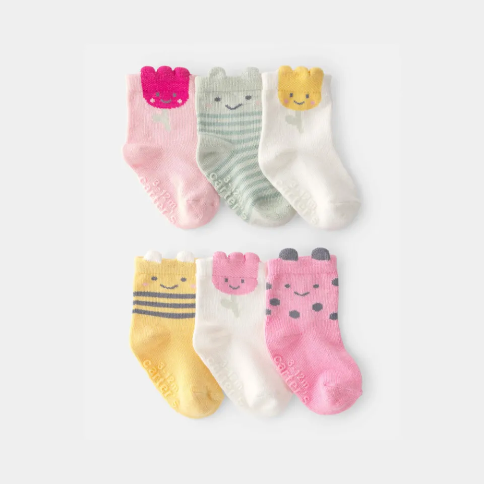 Brighten up your little one's wardrobe with this delightful collection of ankle socks designed for casual wear. Each pair features charming stripes and playful graphics of flowers, bees, and ladybugs, adding a touch of fun to every outfit.