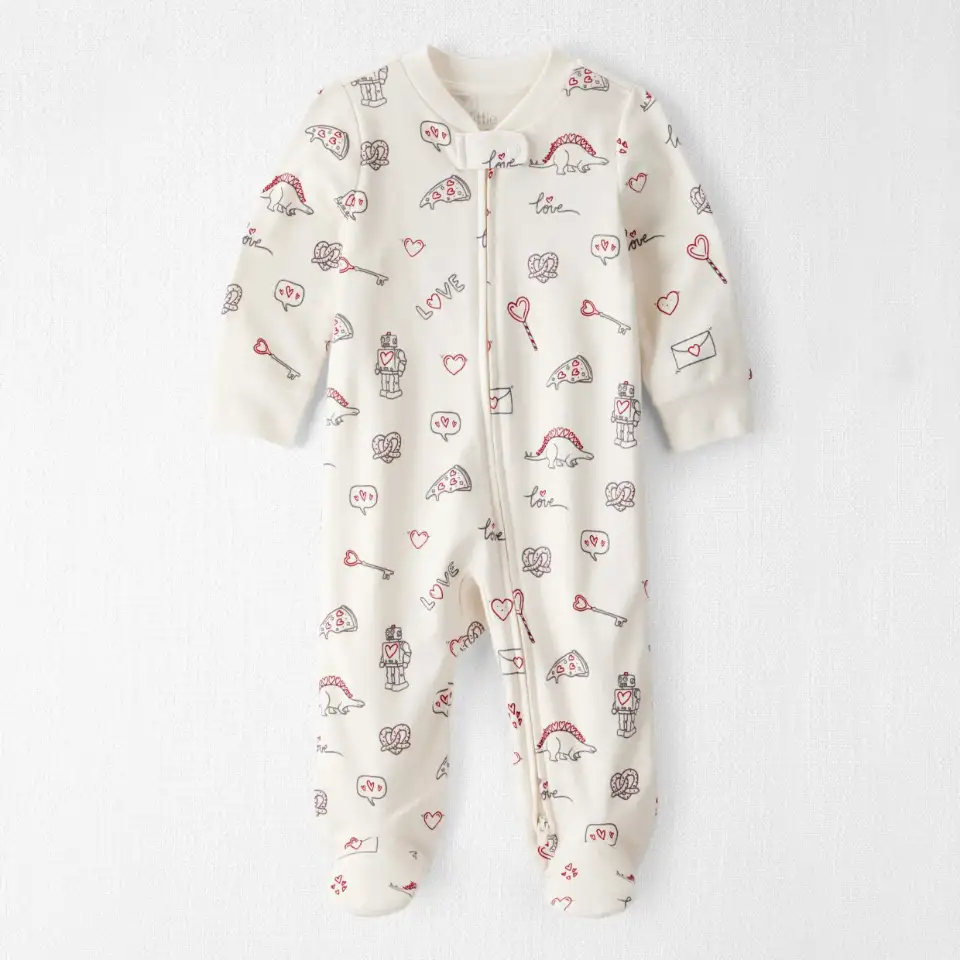 Wrap your little love in cozy comfort with these sleep and play pajamas, featuring a lovable print inspired by our little planet’s most blissful holiday.